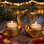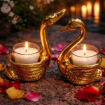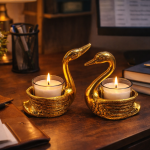 - Crafted in a luxurious gold finish with glass candle cups, these swan-shaped holders are perfect for festive décor, romantic evenings, pooja setups, and premium gifting.