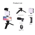 Vlogging Kit Compatible with All Phones & Cameras with Remote, Mic, Mini Tripod Stand, LED Light Phone Holder Clip for Live Broadcasting, Video Calling, Vlogging,